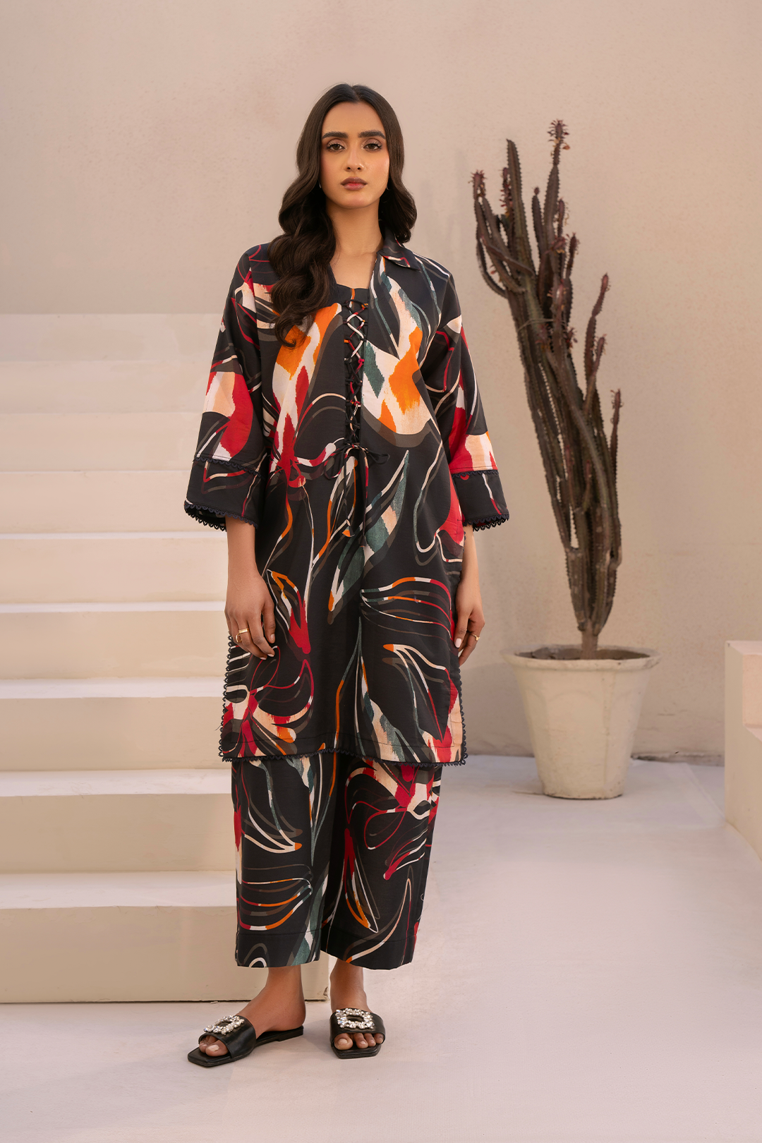 Fabric: LawnPiece: Two Piece (Shirt and Trouser)Details: Digital printed shirt, Digital printed CulottesElevate your style...